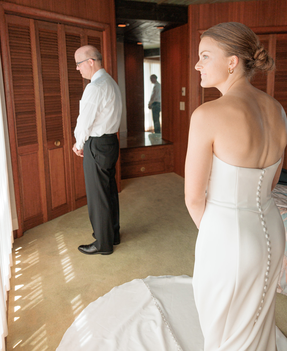 Prior to walking down the aisle, Anastasia made sure to share the first look of her dress with her father. Fully transformed from daughter to bride, Dad conveyed his love before sending Anastasia off to her soon-to-be husband.